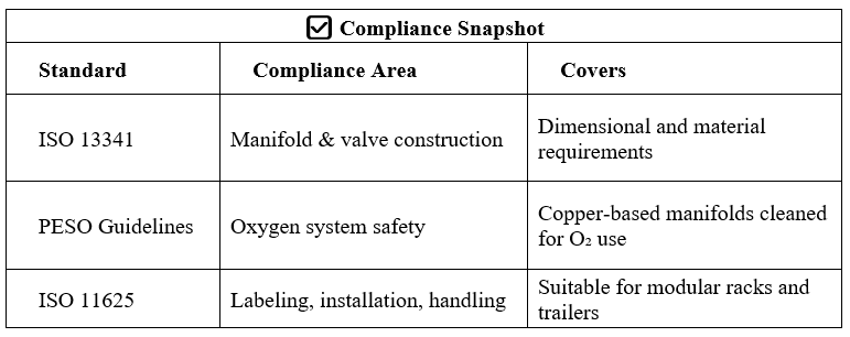 Our manifolds are designed for 150–300 bar high-pressure gas systems as per requirement and built to integrate seamlessly into cylinder packs, quads, and modular skids. Each unit delivers long-lasting performance, easy serviceability, and full compliance for oxygen and industrial gas engineered with attention to every detail.