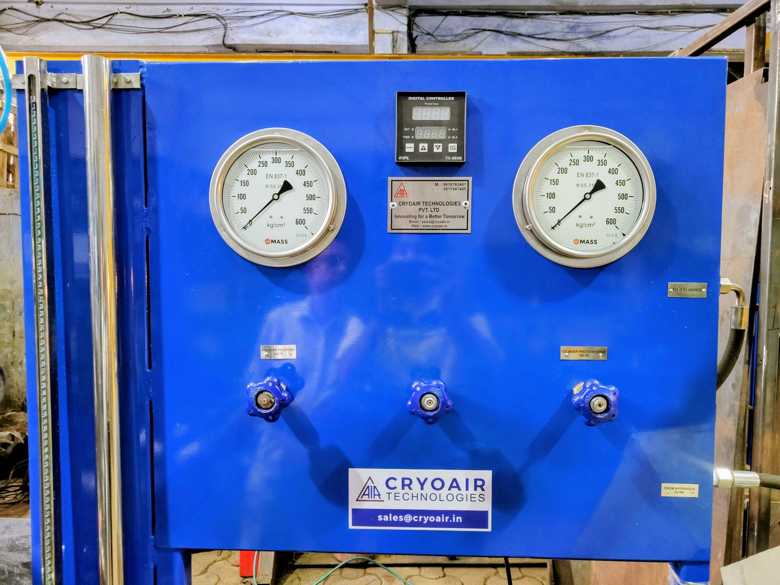 CryoAir’s Hydraulic Cylinder Testing Equipment offers an automated, accurate, and reliable method for testing gas cylinders, ensuring they meet ISO 9809, PESO, and IS 5844:1970 safety standards.